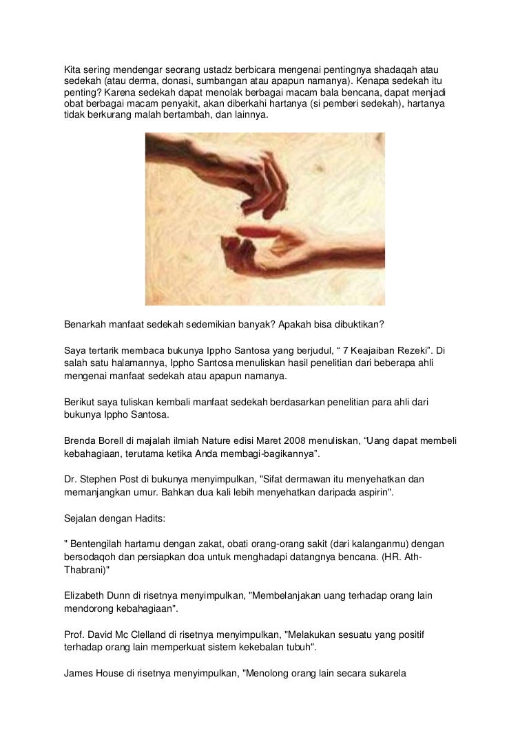 09072007 Bukanlah kewajibanmu menjadikan mereka mendapat petunjuk akan tetapi Alloh-lah yang memberi petunjuk memberi taufiq siapa yang dikehendaki-Nya. 26032014 Sajadah Muslim - Sedekah memiliki sejumlah keutamaan dan keistimewaan. Allah telah menjanjikan kepada ummat ini bahwa setiap harta yang diberikan di jalan kebaikan karena ikhlas mengharapkan ganjaran dari-Nya semata pasti Allah akan memberikan balasan terbaik di dunia dan akhirat.