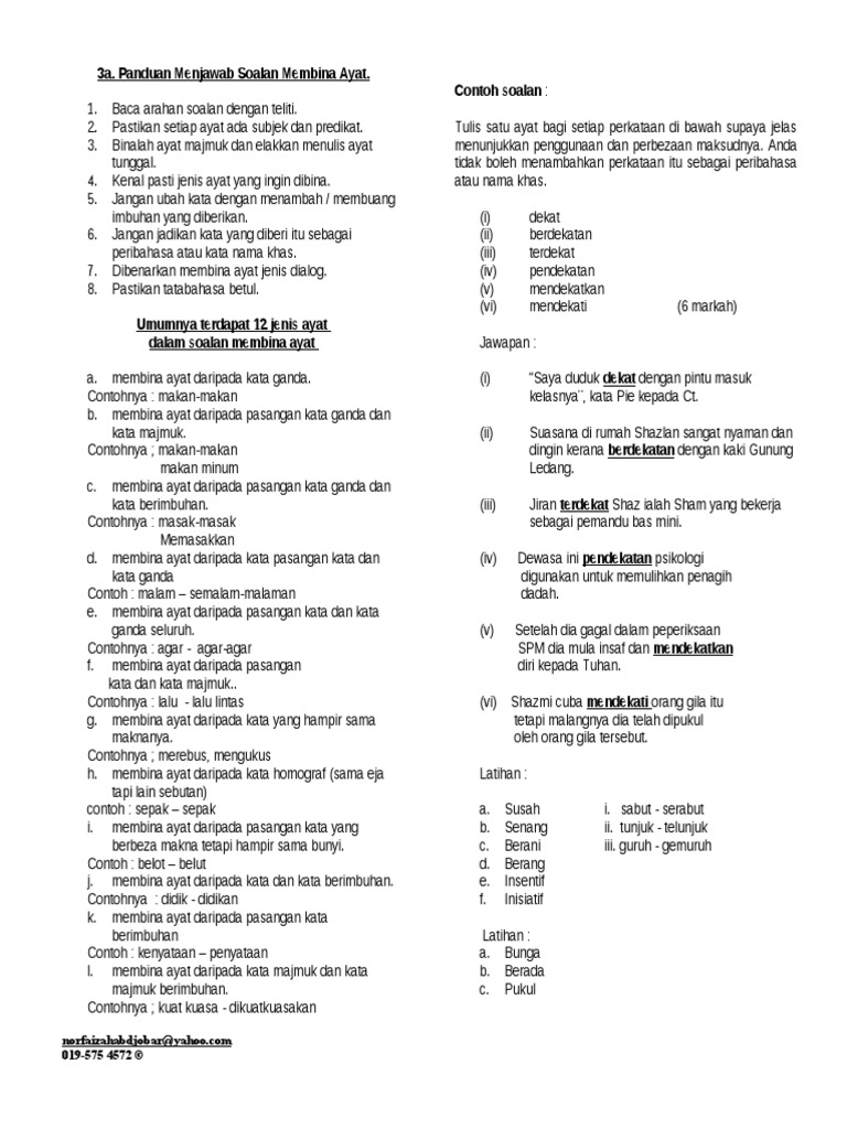 11112010 Salah satu bahagian yang sukar dalam soalan Kertas 2 Bahasa Melayu SPM ialah Soalan 3a iaitu membina ayat. Bina ayat spm soalan 3a apabila anda membina ayat pastikan anda menggunakan formula.